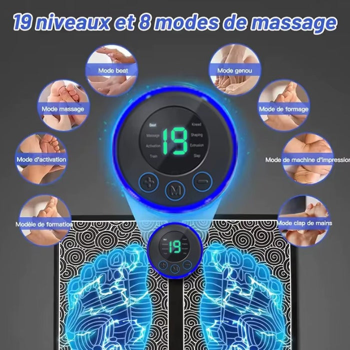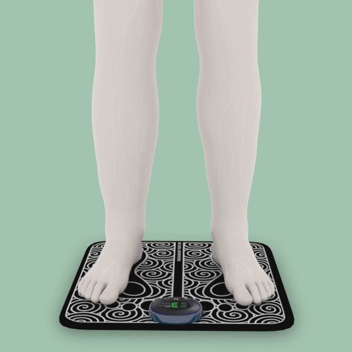 Le tapis Fyfeet émet des impulsions électriques indolores qui stimulent les muscles des pieds et des mollets. Cette stimulation favorise le retour veineux et procure une agréable sensation de détente.